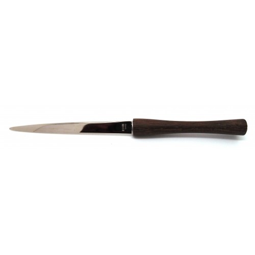 Simple and elegant letter opener with a handle made of black oak (I would call it dark brown, but I don't make the rules...).